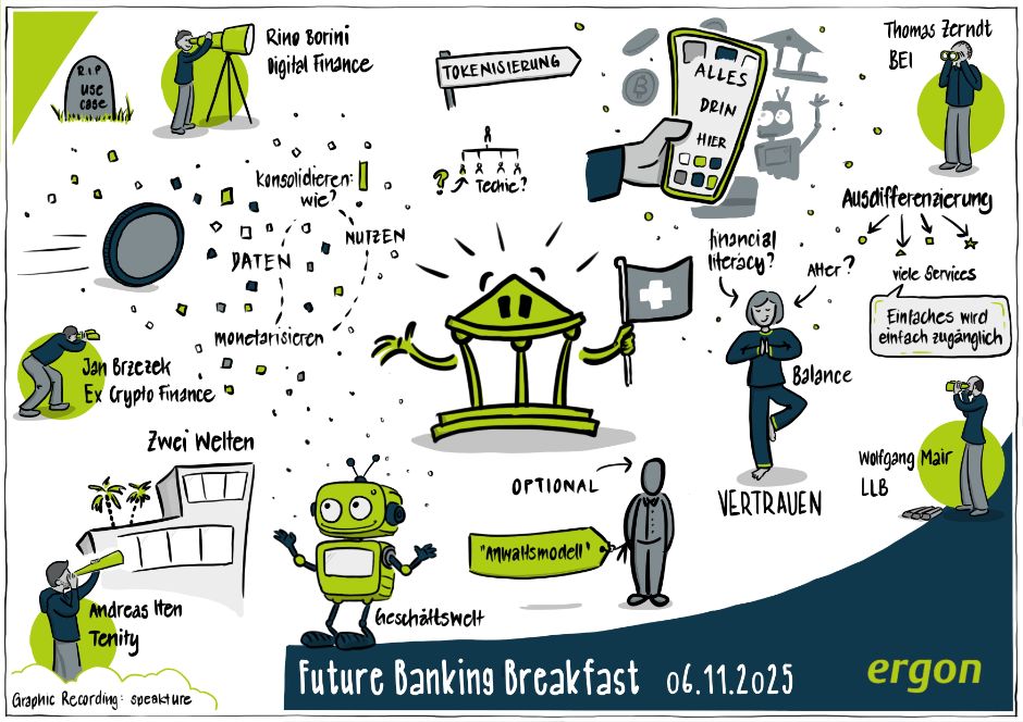 Am 6. November 2025 brachte das Future Finance Breakfast frischen Wind in die Finanzbranche. Dies mit spannenden Ideen, lebhaften Diskussionen und echten Impulsen für das Banking von morgen. Fünf Experten präsentierten Impulsvorträge zu den Trends und Herausforderungen, die das Banking und digitale Vermögenswerte aktuell bewegen. Die Veranstaltung schloss mit einer inspirierenden Podiumsdiskussion, in der durchaus kontrovers diskutiert wurde.